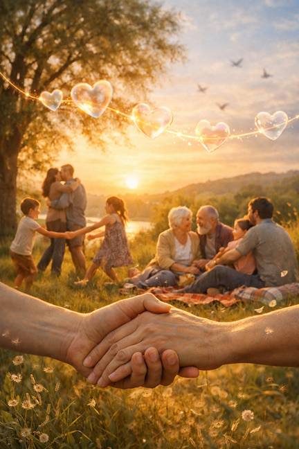 La imagen que acompaña este material representa manos que se sostienen, distintas generaciones compartiendo y un entorno natural que simboliza calma y seguridad. Así funcionan los vínculos sanos: sostienen, conectan y permiten crecer.
